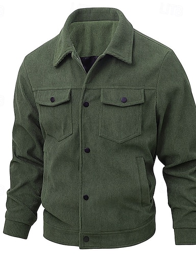Hombre Chaqueta de camisa Chaqueta de Pana Casual Diario Transpirable Bolsillo Primavera & Otoño Plano Clásico Diseño Regular Negro Blanco Verde Oscuro Marrón Chaquetas
