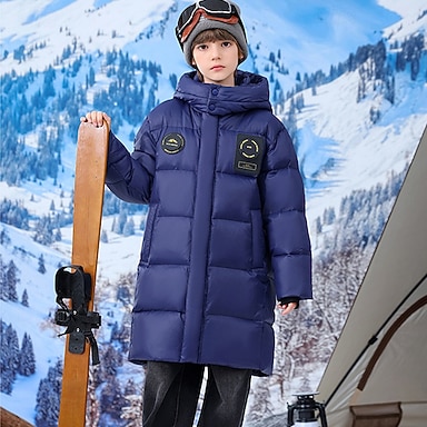 Niños Chico Chaqueta de plumas Chaqueta con capucha Chaqueta acolchada Ropa de calle Color sólido Manga Larga Bolsillo Mantiene abrigado Paravientos: Abrigo Casual Diario Básico Azul Piscina Negro