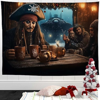 Tapiz navideño: adorno festivo para la pared, diseño navideño con Papá Noel, copos de nieve, árbol de Navidad y paisaje invernal. Ideal para decorar el hogar, el dormitorio o la sala de estar.