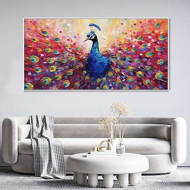 Hermosa pintura al óleo de pavo real, arte bohemio pintado a mano, pintura colorida de animales, decoración de pared, arte abstracto, pintura en lienzo de animales, decoración moderna, obra de arte