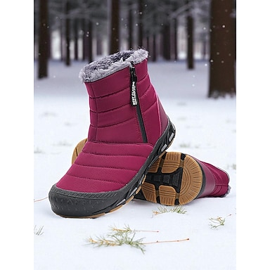 Botines de mujer color burdeos con forro de piel sintética - botas de nieve impermeables con suela de goma antideslizante, calzado cálido y cómodo para actividades al aire libre y uso casual.