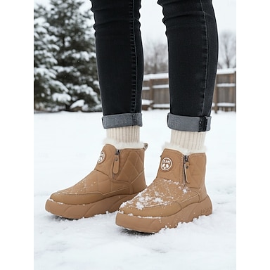 Botas de nieve impermeables acolchadas color caqui para mujer: botines de plataforma con forro de piel cálida, ideales para la nieve, caminar al aire libre, viajar y para uso diario.