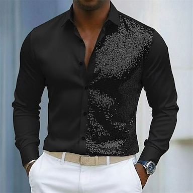 Hombre Camisa Camisa de verano Camisa casual Camisa de playa Abotonar la camisa Negro Blanco Manga Larga Color sólido Diseño Casual Diario Lentejuelas Ropa Moda Casual De moda Cómodo