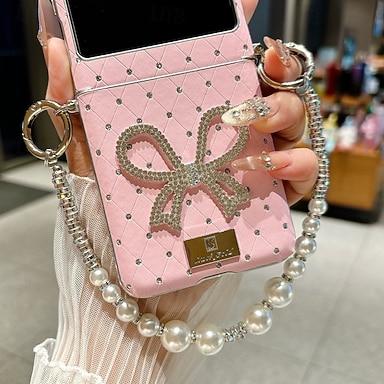 teléfono Funda Para Samsung galaxia Z Flip 7 Z Flip 6 Z Flip 5 Z Flip 4 Funda Trasera con cordón Soporte de carga inalámbrica Caballete Retro TPU Cuero de PU