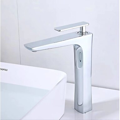 Grifo para lavabo de baño, grifo de baño de un solo mango de estilo contemporáneo de latón con interruptor de agua caliente y fría