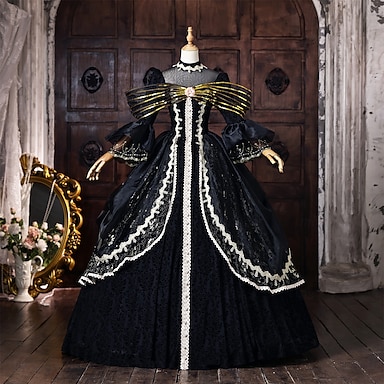 Gótico Rococó Inspirado en la vendimia Vestidos Ropa de Fiesta Vestido de fiesta de graduación Princesa Shakespeare Color sólido Vestido de Gala Disfraz Mujer Real Víspera de Todos los Santos