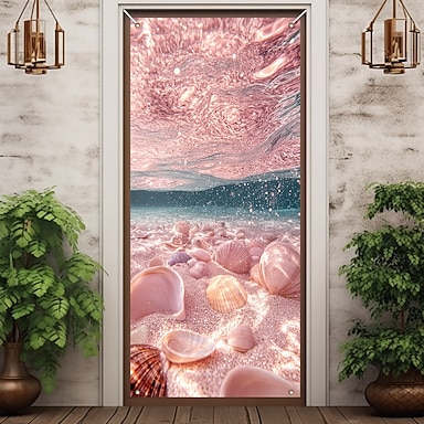 Decoraciones de Puerta de Conchas Rosadas del Océano Fundas de Puerta Tapiz de Puerta Decoración Fondo Banner de Puerta Interior/Exterior para la Puerta Principal de la Granja