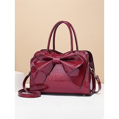 Bolso de mano de piel sintética para mujer con detalle de lazo: estampado de cocodrilo, varios colores, correa ajustable, estilos de transporte versátiles para ocasiones informales y formales.