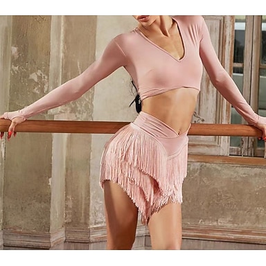 Baile Latino Ropa de Baile para Niños Baile latino de salsa Faldas Corte Chica Rendimiento Ropa Cotidiana Manga Larga Cintura Alta Licra