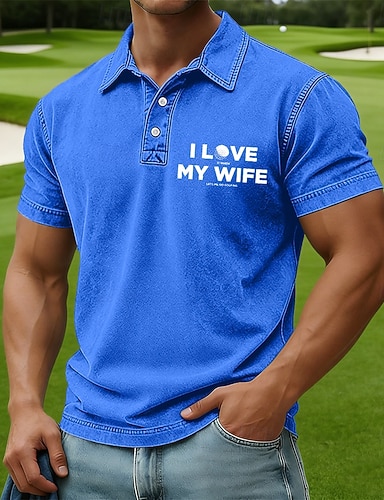 Hombre Golf Camisa desteñida con ácido 100% Algodón Manga Corta Camisas de polo Camisas con cuello Casual Exterior Ropa Deportiva Impresión 3D Botones Primavera verano Azul Piscina Morado Marrón