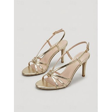Sandalias doradas de tiras con tacón para mujer: elegantes sandalias de tacón de aguja con punta abierta para invitadas a bodas en jardines. &fiestas de verano