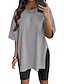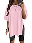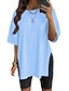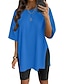 Mujer Camiseta División lateral Color sólido Graphic Moda Clásico Casual Manga Corta Cuello Barco Escote Redondo Tops largos Diario Noche Azul Piscina Negro Blanco Verde Claro Rosa Verano Primavera