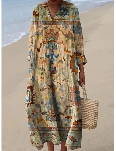 Vestido de fiesta de longitud a los tobillos tipo A-line vestido de cóctel vestido de invitada de boda vestido para la madre de la novia con mangas de 3/4 cuello en V talla grande brillante con color