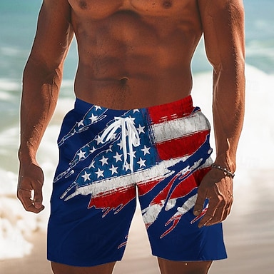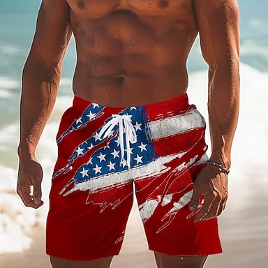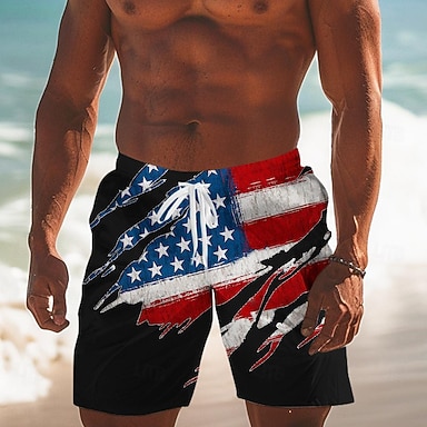 Pantalones cortos de la bandera de EE. UU. para hombres pantalones cortos hawaianos de verano pantalones cortos casuales bolsillos laterales cordón cintura elástica transpirables suaves cortos