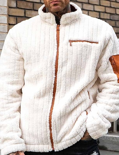 Hombre Chaqueta casual Abrigo de piel sintética Vacaciones Diario Mantiene abrigado Felpa Otoño Invierno Plano Moda Ropa de calle Diseño Regular Blanco Amarillo Color Camello Gris Chaquetas