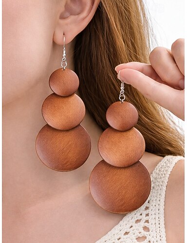 Pendientes colgantes de madera estilo boho para mujer, pendientes geométricos vintage de varios estilos para vacaciones en la playa, resort de verano y uso casual diario.