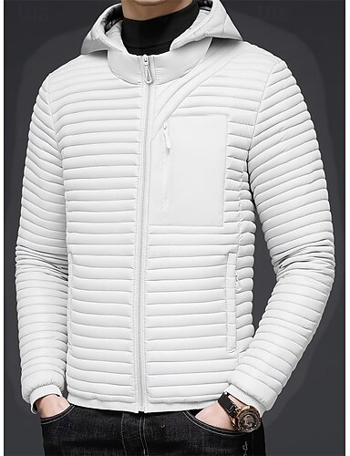 Hombre Abrigo de invierno Chaqueta acolchada Bolsillo Poliéster Vacaciones Ropa Cotidiana Cita Regular Moda Casual Cómodo Mantiene abrigado Invierno Color sólido/liso Blanco Azul Piscina Chaqueta