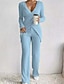 Mujer Blusa Conjuntos de pantalones parte superior del bolero Manga Larga Escote en Pico Color sólido Elegante Moda Ropa de calle Casual Diario Exterior Negro Caqui Azul claro Primavera Ajuste regular