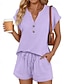 Mujer Conjuntos de dos piezas Conjuntos de pantalones cortos Manga Corta Escote en Pico Plano Moda Ropa de calle Casual Diario Exterior Negro Rosa Verde Ejército Verano Ajuste regular