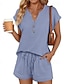 Mujer Conjuntos de pantalones cortos Manga Corta Escote en Pico Color sólido Moda Ropa de calle Casual Diario Exterior Negro Azul Marino Oscuro Verde Trébol Verano Ajuste regular