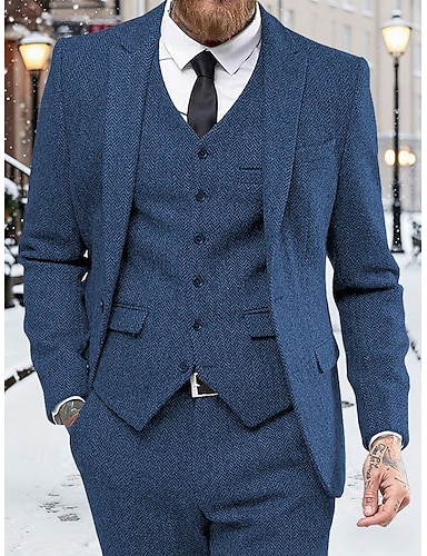 Hombre Chaleco Formal Boda Navidad Vacaciones Moda Elegante Primavera Otoño Bolsillo Botones Lana Acrílico Cómodo Plano Espiga Botonadura Simple Diseño Ajuste regular Negro Champaña Rojo Burdeos