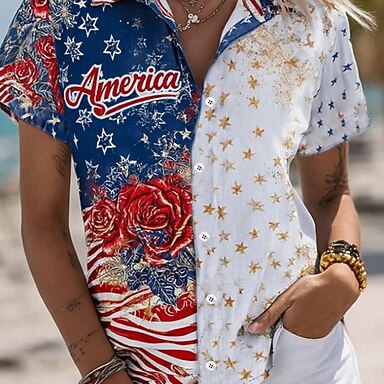 día de la independencia americana Mujer Camiseta Estampado Asimétrico Graphic Bandera estadounidense Vintage Moda Casual Manga Corta Un Hombro Tops regulares Diario Noche Fin de semana Negro Rojo