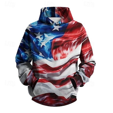 Hombre Bandera estadounidense Sudadera Moda Diario Casual retro de la vendimia Con Capucha Vacaciones Fiesta Ropa de calle Festival Azul Piscina Rojo rojo 2 Estampado Otoño Invierno Diseñador S M L