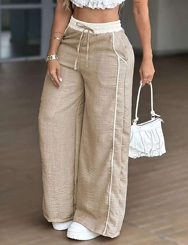 Mujer Pantalones Pantalones casuales Pantalones de verano Pantalones de playa Vacaciones Moda Casual / Diario Longitud total Media cintura Color sólido Plano Perneras anchas Cintura elástica
