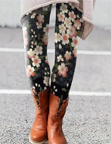 Mujer Pantalones Polainas Leggings cómodos Ropa de calle Casual Longitud total Alta cintura Flor Cintura elástica Estampado Transpirabilidad Cómodo Elástico Vacaciones Calle Ropa Cotidiana Negro
