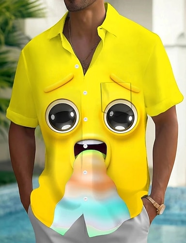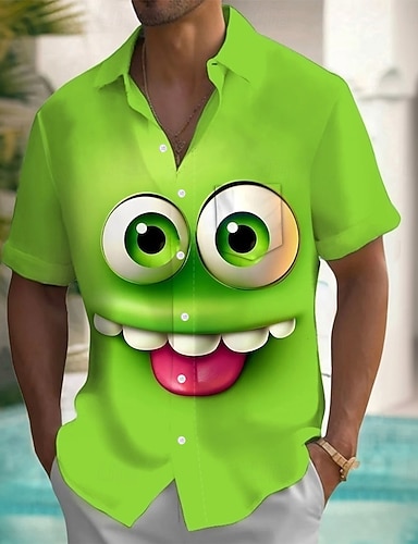 Hombre Caricatura Gracioso Ojos grandes Camisa Camisa de verano Abotonar la camisa Manga Corta Moda informal Exterior Vacaciones Uso Diario Verano Primavera Cuello Vuelto Impresión 3D camisas con