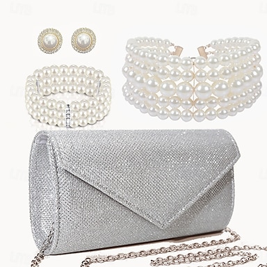 collar pendientes pulsera conjuntos bolso elegante &Lujosa aleación de diamantes de imitación de poliéster brillante para cosplay, bisutería de moda para mujer.