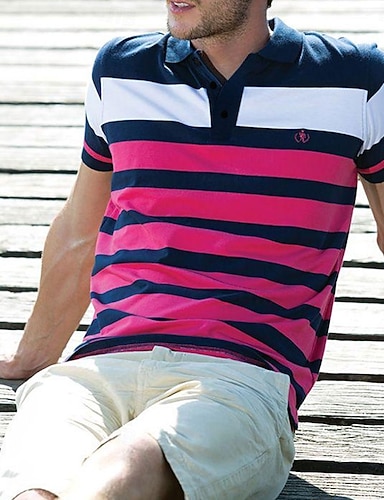 Hombre Camiseta de golf polo de golf Trabajo Casual Diseño Manga Corta Básico Moderno Bloque de color A Rayas Retazos Botón Primavera verano Ajuste regular Vino Azul Marino Verde Camiseta de golf
