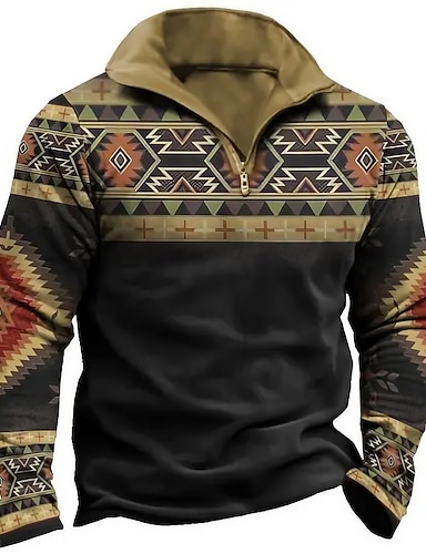 Hombre Tribal Geometría polo con cremallera Manga Larga Camisas de polo Cuello Vuelto Zip Vintage Exterior Casual Diario Ropa de calle 3D Estampado Otoño invierno Negro
