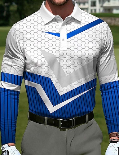 Hombre Geométrico Golf Camisetas polo deportivas Manga Larga Camisas de polo Diseño Casual Exterior Ropa Deportiva Ropa Cotidiana Impresión 3D Botones Primavera Otoño Azul Piscina Amarillo Rojo