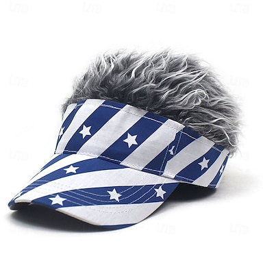 Hombre Sombrero con visera y pelucas con pinchos Visera de pelo falso Peluca para hombre con sombrero para el sol Gorra de Béisbol Sombrero de peluca Café Gris Mezcla de Poliéster y Algodón Estampado