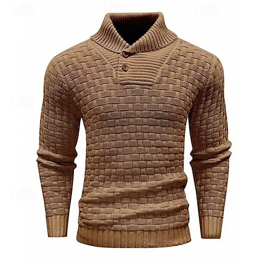 Hombre Pulóveres Chaqueta de Punto Estriado Tejer Tops regulares De Punto Plano Cuello doblado Vacaciones Moda Casual Ropa Cotidiana Ropa Primavera & Otoño Color Caquí M L XL