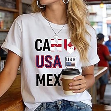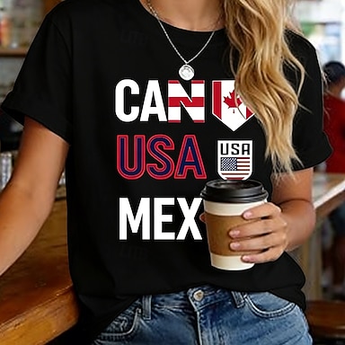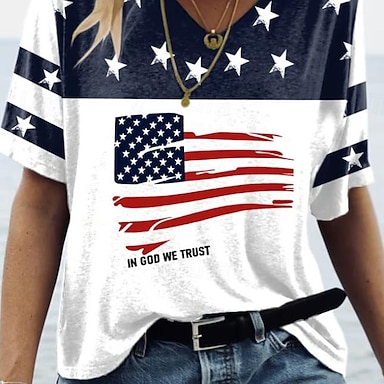 día de la independencia americana Mujer Camiseta Estampado Graphic Bandera Estrella Elegante Clásico Casual Manga Corta Cuello Barco Escote Redondo Tops regulares Diario Negro Blanco Rojo Verano