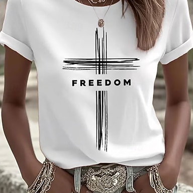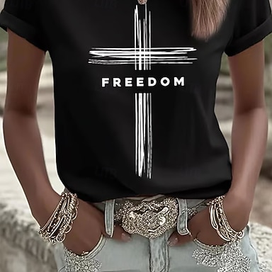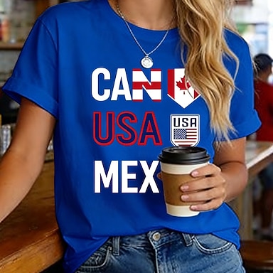 día de la independencia americana Mujer Camiseta Estampado Graphic Letra Vintage Elegante Clásico Manga Corta Escote Redondo Tops regulares Diario Azul Piscina Negro Blanco Rojo Verano Primavera