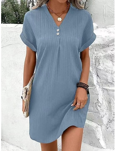 Mujer Mini vestido Vestido informal Vestido de verano Elegante Moda Moderno Exterior Vacaciones Noche Holgado Plano Manga Corta Escote en Pico Plata Negro Blanco Rojo Verano Primavera