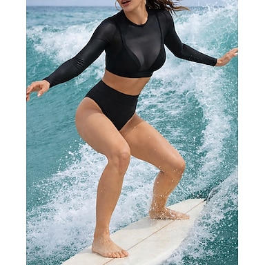 Mujer Conjuntos de bikini Bikini de cintura alta Color sólido Malla Protección UV Elástico Manga Larga Bañadores Traje de baño Surf Buceo Natación Verano