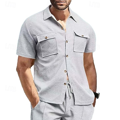 Hombre Camisa Camisa de gofres Camisa casual Abotonar la camisa Negro Blanco Burdeos Verde Oscuro Color Caquí Manga Corta Plano Cuello Camisero Casual Diario Bolsillo delantero Ropa Elegante Moda