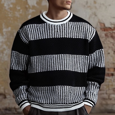 Hombre Suéter de punto Estriado Croché Tejer Regular De Punto Plano Cuello Barco Moda Básico Ropa Cotidiana Cita Ropa Otoño invierno Negro Blanco S M L