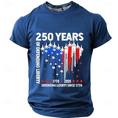 Día de los Caídos Hombre Bandera estadounidense de los Estados Unidos Camiseta Manga Corta Camiseta Impresión 3D Cuello Barco Camisa retro de la vendimia Patriótico Diario Festival Azul Piscina Negro