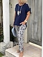 Mujer Conjuntos de dos piezas Conjuntos de pantalones parte superior del bolero Manga Corta Cuello Barco Graphic Estampado Elegante Moda Ropa de calle Casual Diario Exterior Negro Rosa Azul Marino