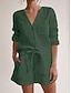 Mujer Conjuntos de pantalones Manga Larga Cuello Camisero Color sólido Moda Ropa de calle Casual Diario Exterior Blanco Verde Ejército Marrón Verano Holgado