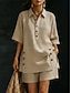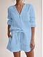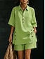 Mujer Conjuntos de pantalones cortos Manga 3/4 Cuello Camisero Color sólido Moda Ropa de calle Casual Diario Exterior Azul Piscina Blanco Verde Trébol Verano Ajuste regular