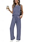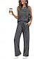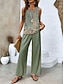 Mujer Camis Conjuntos de pantalones parte superior del bolero Sin Mangas Cuello Barco Color sólido Correa Moda Ropa de calle Casual Diario Exterior Gris oscuro Negro Azul Marino Verano Ajuste regular