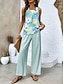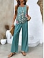 Mujer Conjuntos de pantalones Sin Mangas Escote Cuadrado Floral Graphic Frunce Estampado Elegante Moda Ropa de calle Casual Diario Exterior Verde Ejército Azul Piscina Verde Trébol Verano Ajuste