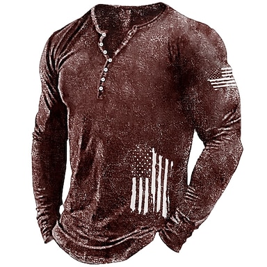 4 de julio de 2026 250º Día de los Caídos Camiseta de Manga Larga Henley Gráfica 3D de la Bandera Nacional para Hombre Diario al Aire Libre