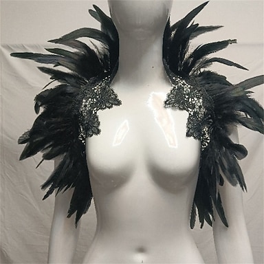 Carnaval 2026 Accesorios de Samba del Carnaval de Río Capa Chal de Plumas Negras para Mujeres con Aplicación de Encaje Disfraz para Festival de Brasil